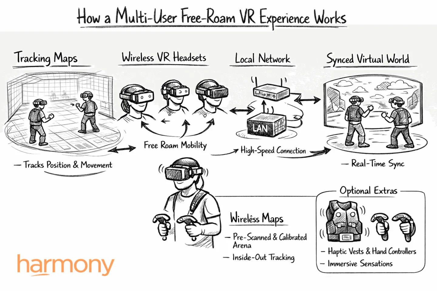 At Harmony Studios, we design and develop large-scale LBVR attractions for theme parks, museums, entertainment venues and enterprise clients. Here’s how LBVR works and how we bring it to life.