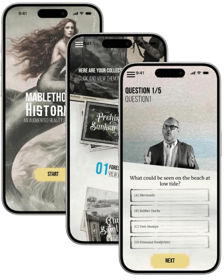 Geolocated Augmented Reality: Immerse yourself in Mablethorpe’s rich history as you wander around the beach. Using your device’s GPS, our app seamlessly integrates augmented reality experiences with real-world locations, allowing you to uncover hidden gems and historical secrets as you explore.
